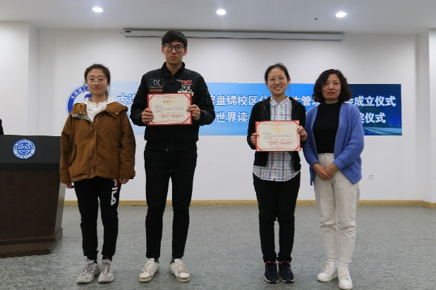 在“世界读书日有奖征文”活动颁奖环节,图书馆的各位老师以及校区团工委冉冶老师为在“世界读书日有奖征文”活动中获盘锦市一等、二等、三等、优秀奖的同学颁发获奖证书。获奖的各位同学,他们用富有感情和思想的文字带我们重温红色经典、回顾英雄人物事迹、了解典型人物报道,号召大家传承革命精神,勇担时代使命,激发奋进伟力!