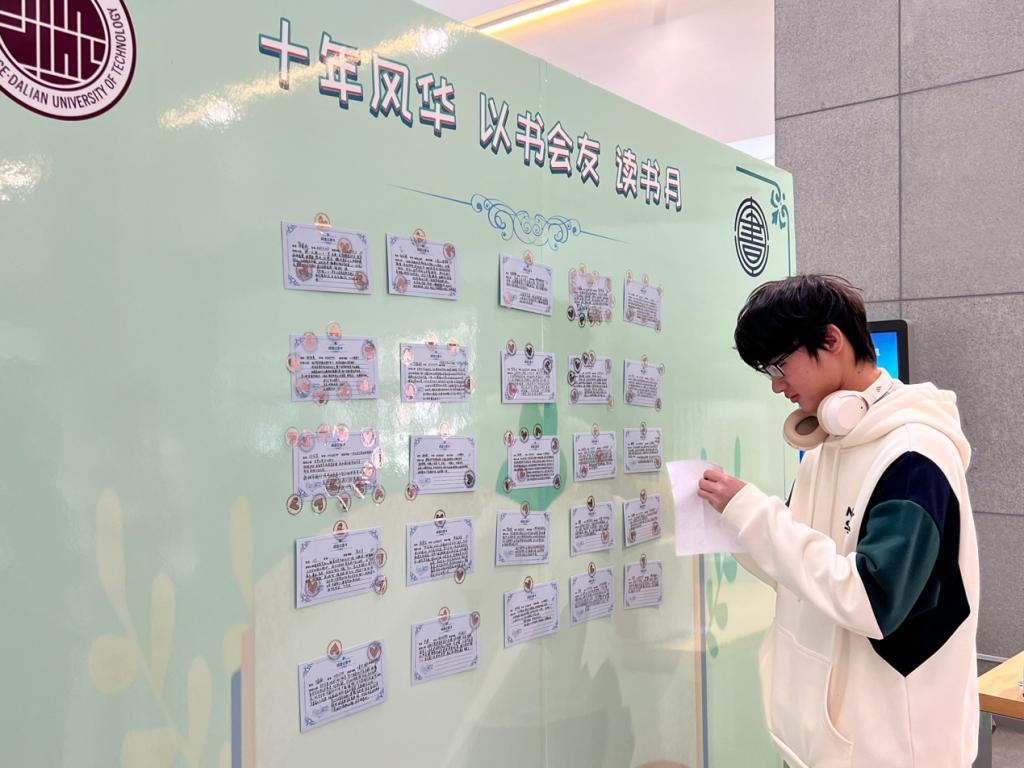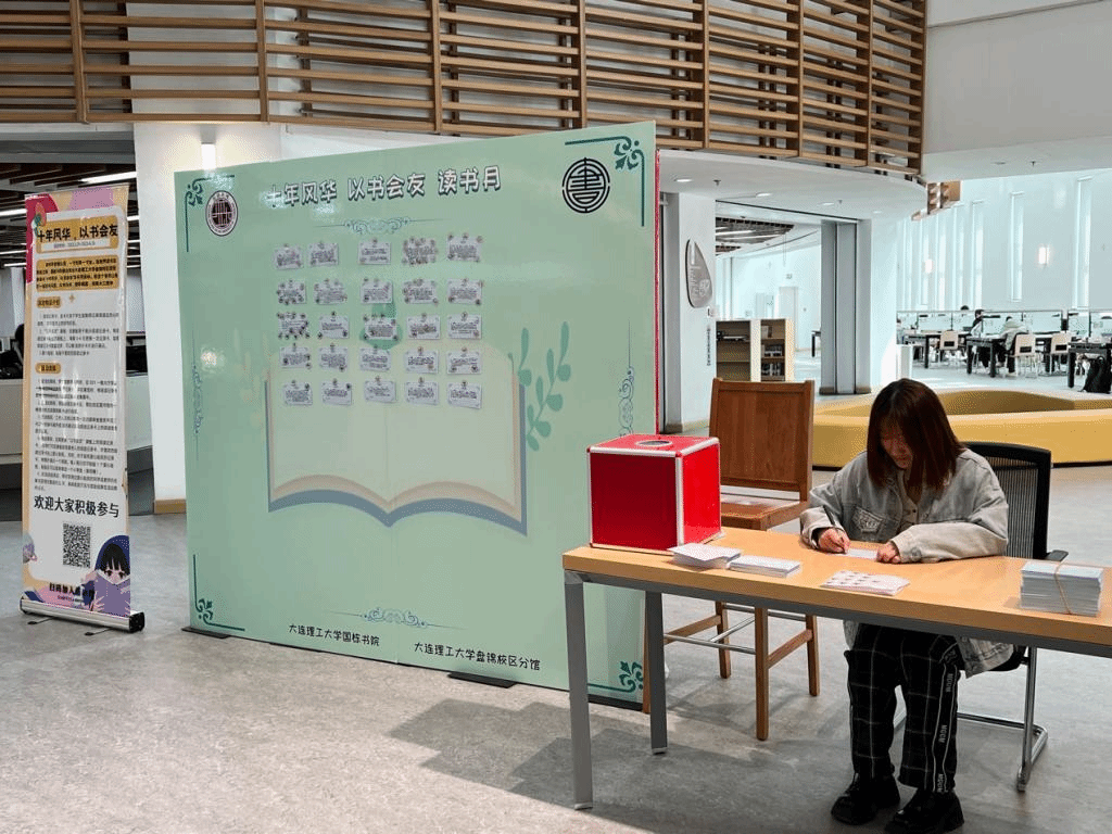 校区图管会与国栋书院一同举办校区十年风华“以书会友读书月”活动。活动在图书馆一楼设立了“以书会友”展板,并且对阅读记录卡进行展示。