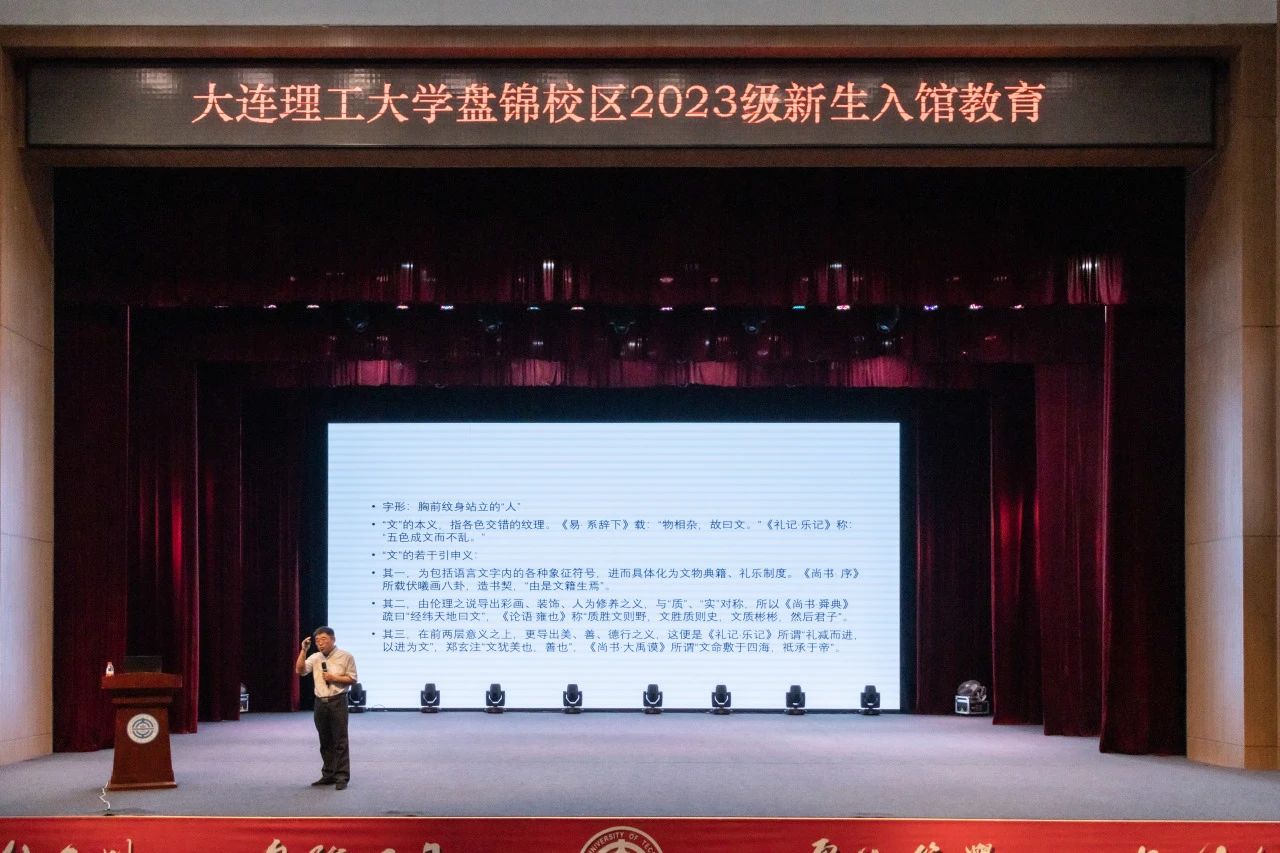 最是书香能致远,腹有诗书气自华。“书香校园”工作是盘锦校区落实“三全育人”的重要载体,校区学生系统、团工委、图书馆盘锦校区分馆等多部门联手,通过这一载体营造校区大学生阅读氛围、开展经典阅读推广,已坚持多年,并收到良好效果。2023级新生入学教育期间,为引导新生认知大学图书馆,提升对阅读本质的认识,养成良好的阅读习惯,将文化与阅读联系起来,自觉融入到自我成长的过程之中,图书馆盘锦校区分馆联合校区学生系统、团工委等部门面向2023级新生开展了新生入馆培训和经典阅读讲座,并邀请大连理工大学郭金明教授作为主讲嘉宾。9月11日、12日晚上郭金明教授在E03礼堂为盘锦校区2023级新生讲授了专题讲座《做一个有文化的知识分子——从经典阅读开始》,图书馆盘锦校区分馆馆长麻海博担任主持。